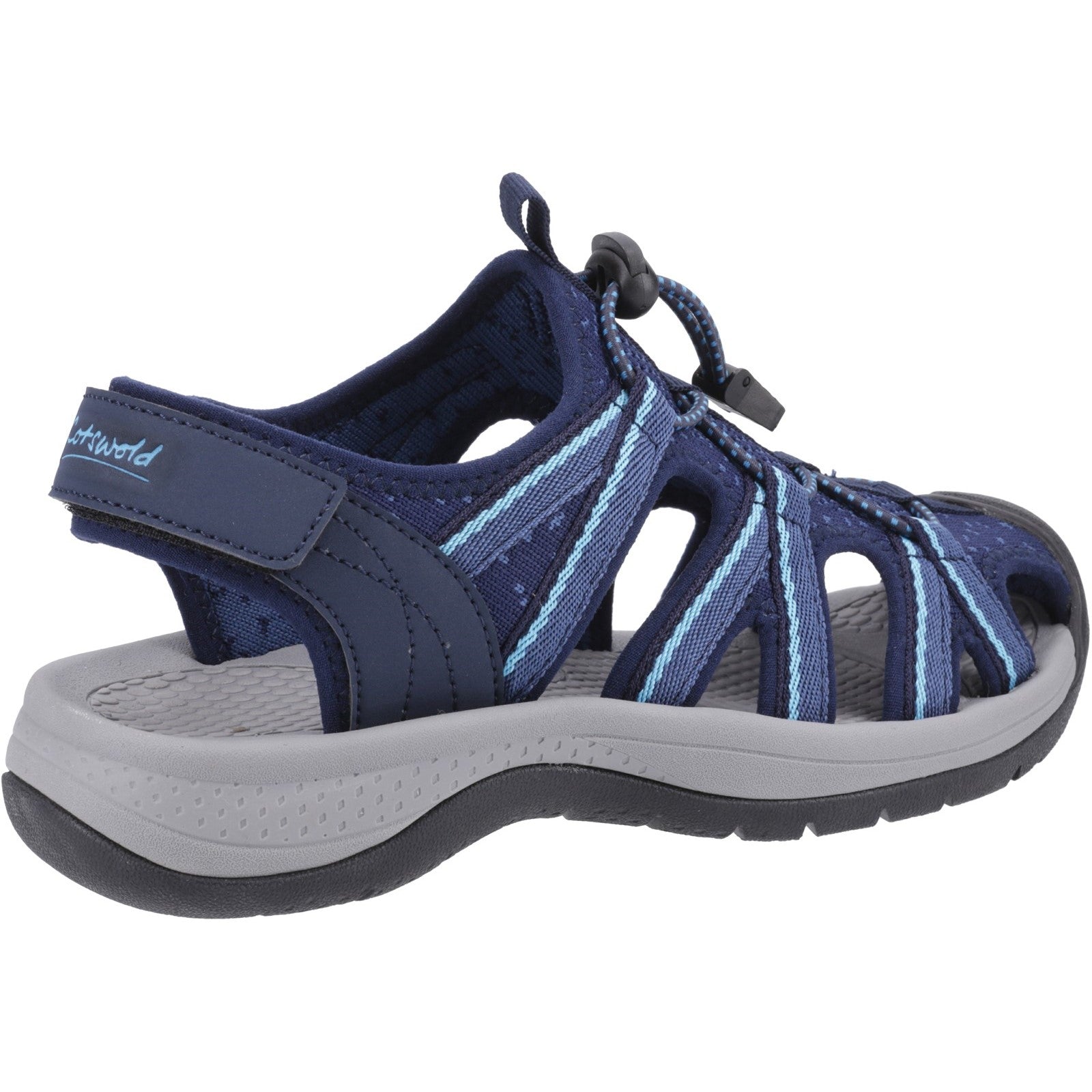 Cotswold Shoes brings a ladies summer walking sandal. Featuring a caged upper design with pull cord fastening. With an ankle touch fastening strap to help provide a customisable fit.